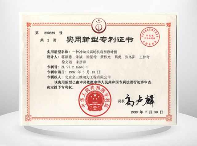 实用型专利证书